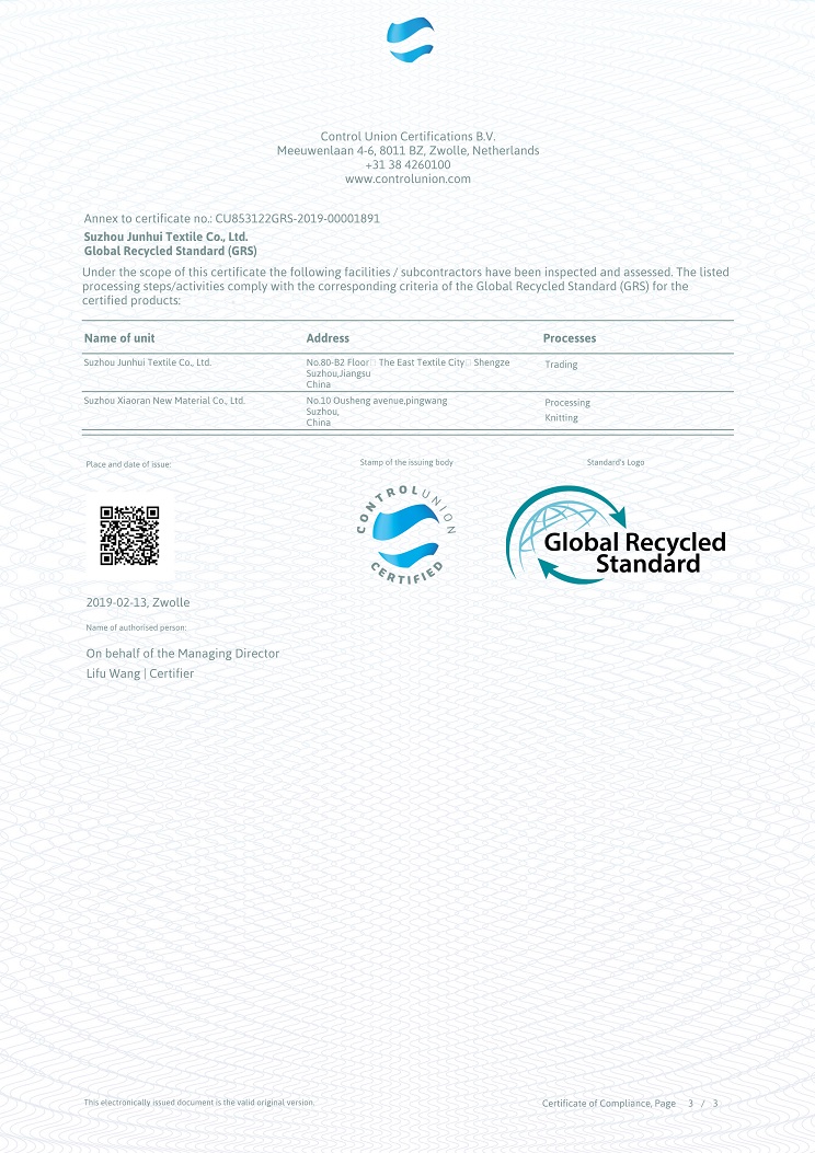 MMXIX GRS CERTIFICATION